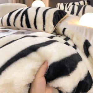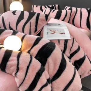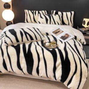 Be the first to review “Zebra-print high-weight rabbit fur four-piece bedding set”